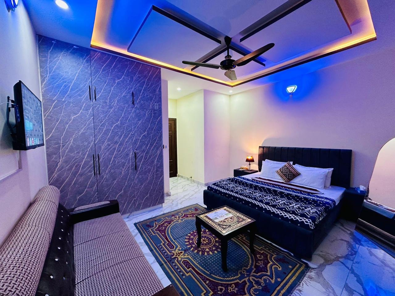 From our luxurious lobby and guest lounge to our top-tier accommodations, we provide a world-class stay in Rawalpindi. Explore our Gold Suites, King Suites, and Deluxe Rooms, each meticulously designed with premium amenities, air conditioning, and high-speed internet. Whether you are unwinding in our sophisticated waiting area or enjoying the privacy of your suite, experience the perfect blend of luxury and convenience at Bahria Town’s most prestigious address.